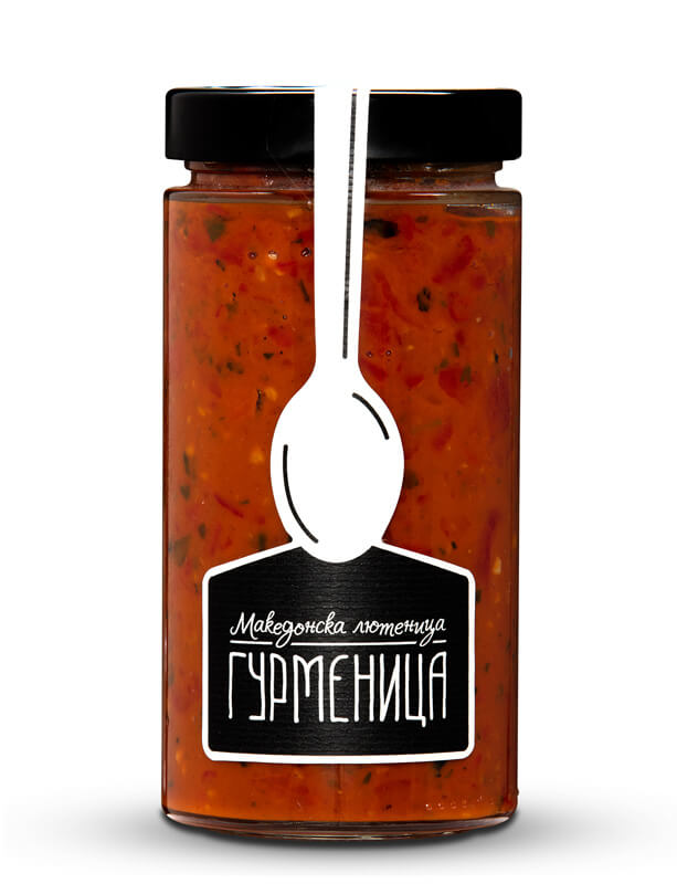 Гурменица Македонска лютеница се приготвя от печени червени чушки, доматено пюре, слънчогледово олио, захар, чесън, магданоз, сол. Гурменица дължи прекрасния си вкус на висококачествените зеленчуци, които подбира.