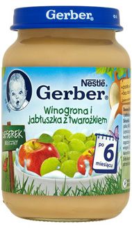 Пюре Нестле Гербер ябълка и грозде с извара след 6м. 190г.
