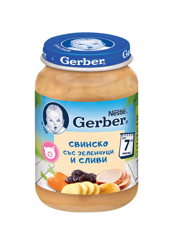 Нестле Гербер пюре свинско със сушени сини сливи след 7м. 190гр.