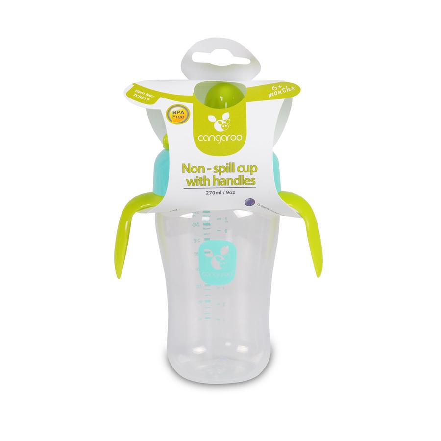 Неразливаща се чаша с дръжки, предназначена за деца на възраст 6 месеца +. Продуктът е оборудван с твърд накрайник с клапа предпазваща от разливане на течностите. Състав: полипропилен, TPE; Без BPA