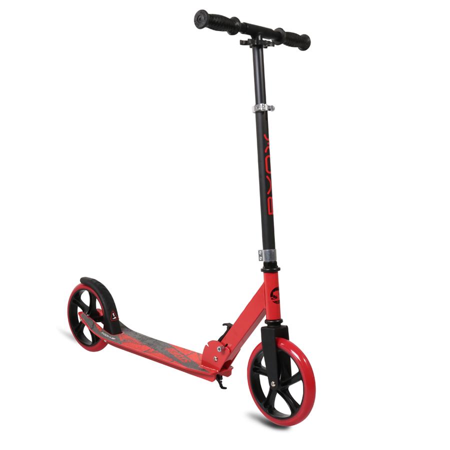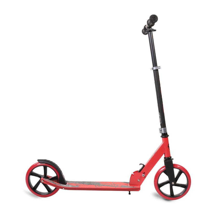 Луксозна алуминиева тротинетка с 200мм PU колела с лагери ABEC-5 Височината на кормилото може да се регулира от 75 - 90 см Супер функционална задна спирачка и странична стойка Максимална товароносимост : 100 кг размер на борда за стъпване: 510*113 см размер на сгънатата тротинетка: 85*37*95 см