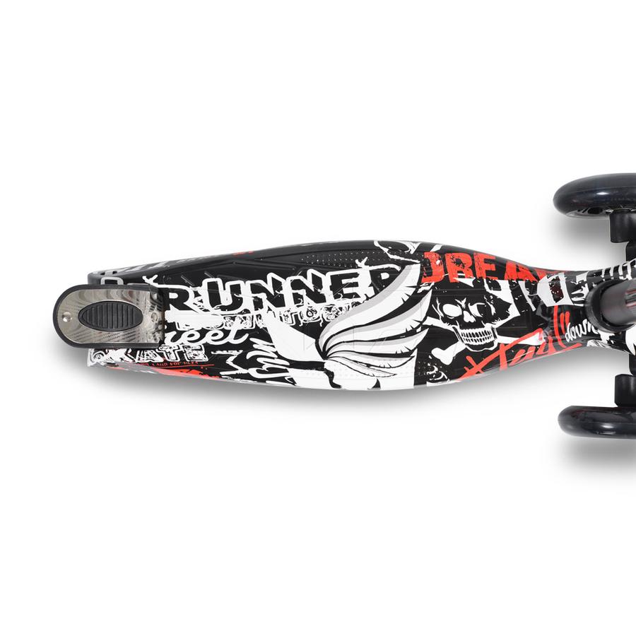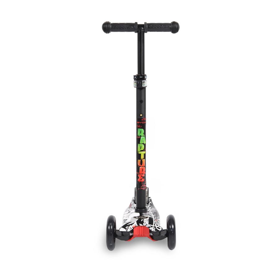 Алуминиева тротинетка с водно трансферен принт на PP платформата; PU светещи колела с размер 120*30мм и задни две 80*30мм;Височина на кормилото 65- 87 см; Размер на основата 540*130 мм; Максимално натоварване до 40 кг.