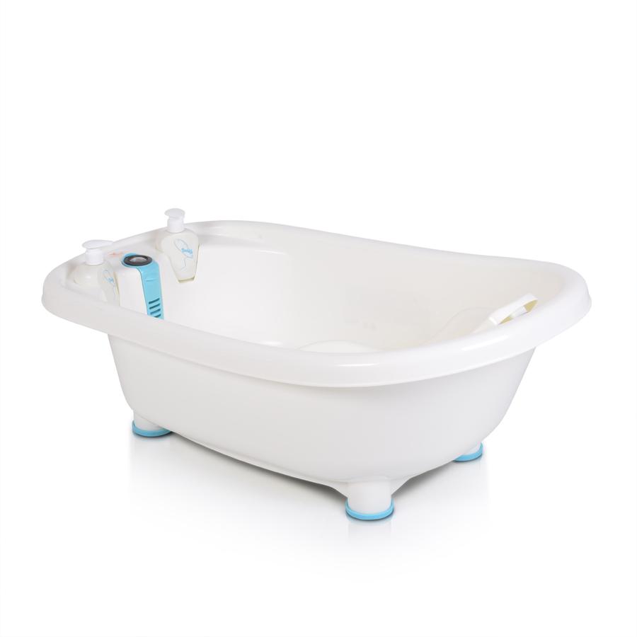 Мултифункционална вана с вграден термометър. Шишенца за шампоан и за душ-гел. Анатомична, вътрешна подложка за новородени бебета до 6 месеца в легнало положение. Може да се откача, когато не е нужна. Капачка за канала и дренажна тръба за водата. Възможност за закупуване на стойка.