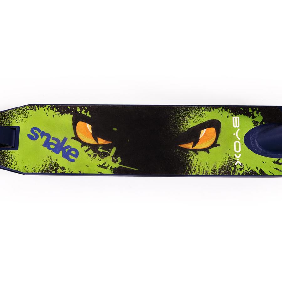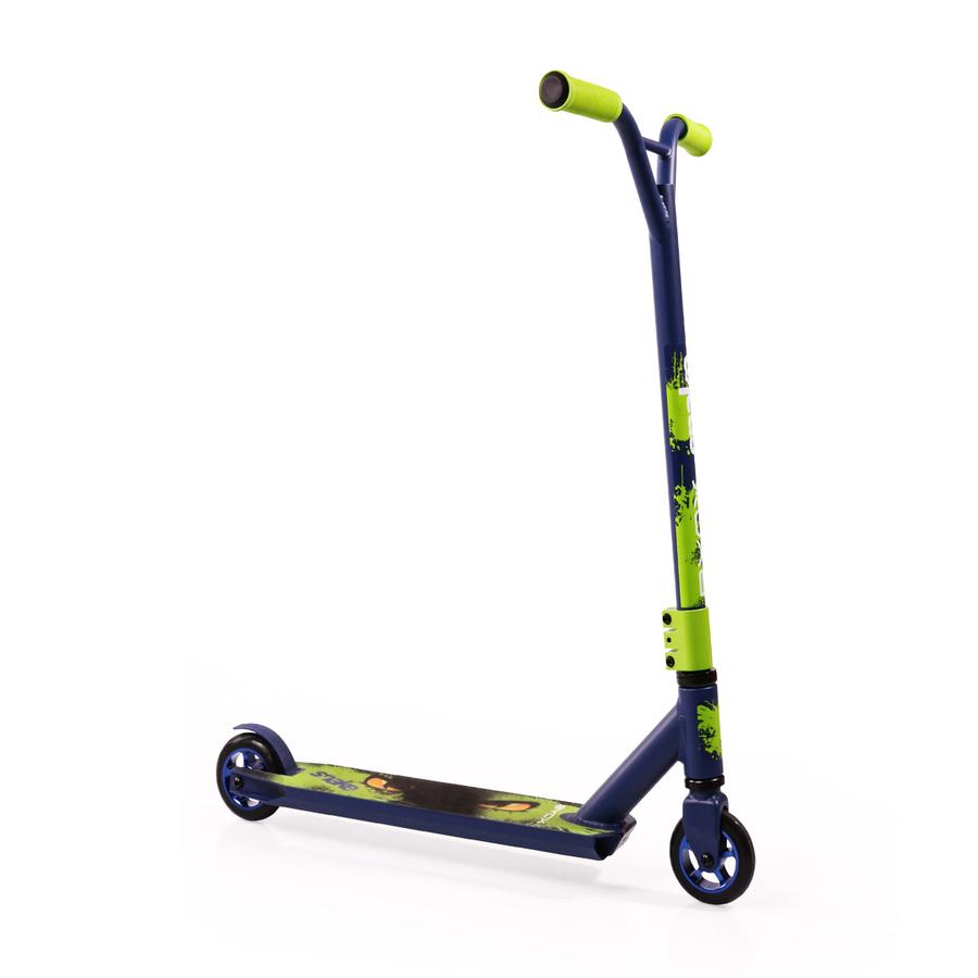 Тротинетка за трикове с основа 500-110мм; водоустойчиво покритие против хлъзгане; кормило височина 80см; дължина 46.5см; NBR ръкохватки 12см; стягаща скоба с 3 болта; PU колела 100мм с alu core; лагери ABEC-9 ; максимално натоварване 100кг
