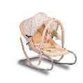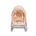 Лесно сгъваем детски шезлонг със стабилна метална рамка, подходящ за деца с тегло до 9 кг. Снабден е с 3-точков предпазен колан. Облегалката на шезлонга има две позиции на лягане. Лесно преносим, благодарение на удобните каишки, разположени от двете му страни. Арка с играчки.