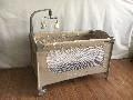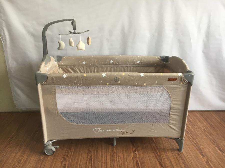Сгъваема детска кошара; Подходяща за употреба вкуъщи и пътуване; Сгъва се лесно и компактно, заемайки минимално място; Подходяща за бебета от раждането до 14 кг.; Със 2ро ниво за спане подходящо за деца между 0 и 6 месеца; Идеална както за сън, така и за игра; Музикален гриф в 4 играчки; Голям джоб с играчки; Страничен отвор с цип предлага на детето удобен дотъп да влезне и/или излезне по време на игра; Висококачествен ленен плат с приказни мотиви; 2 колелца, за по-лесно преместване и 2 лесно достъпни стопера; Компактно и лесно сгъване; Чанта за лесно пренасяне; Матрак подходящ за спане с дебелина 1.5см.;
