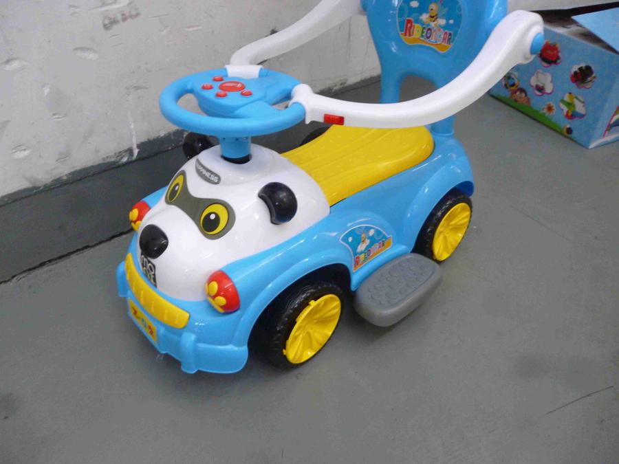 Детската пластмасова кола за яздене е с дизайн, който допринася за развитието на моториката и баланса на детето.