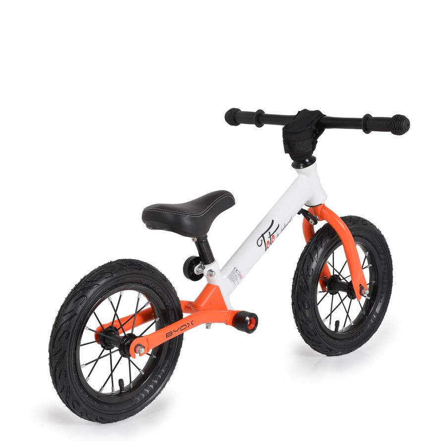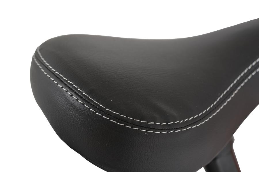 Противохлъзгащи ръкохватки, декоративно покритие на лапата на кормилото, 12“ стоманени капли с помпащи гуми, кръгли стъпенки от двете страни на рамката за поставяне на краката, мека седалка регулираща се на височина от 34см до 43см.