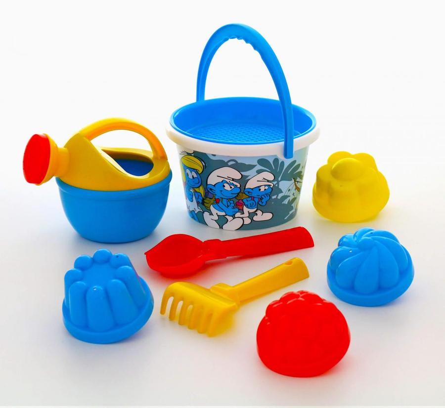 Плажният комплект “The Smurfs“ ще предостави на вашето дете възможност за часове забавни игри както на плажа, така и в къщи. Комплектът съдържа изирисувана плажна кофичка, сито, лопатка, гребло, четири пясъчни формички и лейка.
