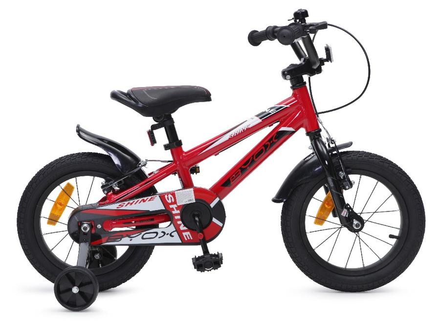Детски велосипед 14“ с алуминиева рамка. Алуминиеви капли. Алуминиев държач за кормило. Предна и задна V-brake спирачки. Пластмасови калници и предпазител за верига. Звънец. Помощни колела Подходящ за деца от 4 до 5 годишна възраст , с максимално тегло до 25 kg