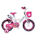Детски велосипед 14“ с метална рамка. Метални капли. Предна и задна V-brake спирачка. Пластмасов кош, шише за вода и звънец. Помощни колела. Метални калници. Подходящо за деца до 4 до 5 годишна възраст , с максимално тегло до 25 kg