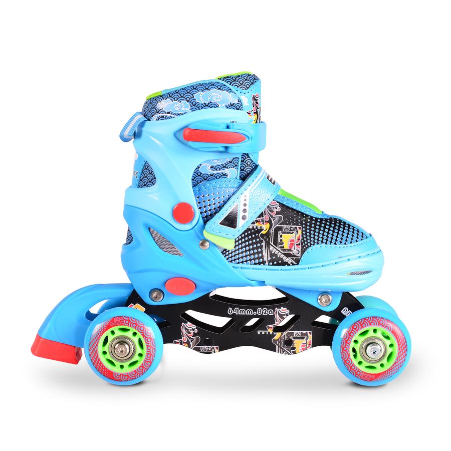Регулируемите ролери са подходящи за деца на възраст над 3 години и тегло до 60 кг. Тези детски ролери имат 4 PU колела с размер 70х24мм +64*24мм с лагери ABEC-7, от които предното е светещо. Този модел е снабден със система за регулиране на размера на четири етапа: размер L от 38 до 41, М от 34 до 37 и S от 30 до 33 номер обувка. Ролерите са с лека алуминиева основа и спирачка. Закопчаването е с Velcro лента и двойно подсигурена катарама.