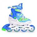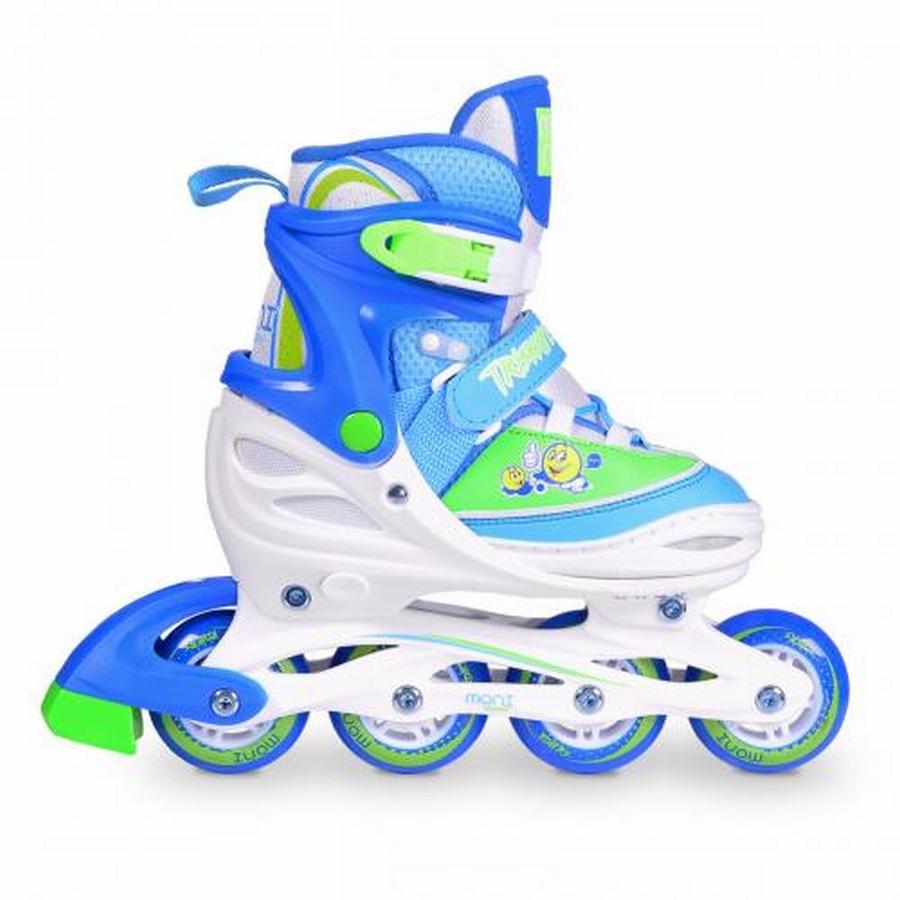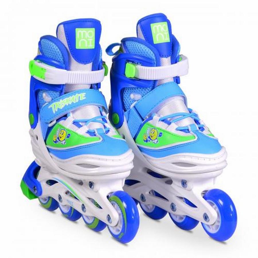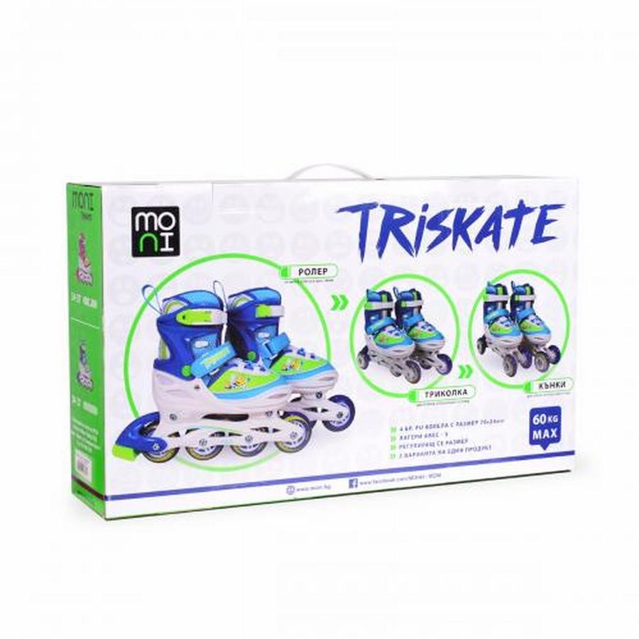 Ролери 3 в1 са подходящи за деца на възраст над 3 години и тегло до 60 кг. Тези детски ролери имат 4 PU колела с размер 70х24мм с лагери ABEC-5, които имат възможност за поставяне в три положения: *4те колела в една редица като ролери *2 колела отпред и 2 отзад като кънки *2 колела отзад и 2 в редица отпред Така детето ще има стабилност по време на пързаляне, а когато порасне колелата могат да се монтират в една редица.Този модел е снабден със система за регулиране на размера на четири етапа: от 34 до 37 номер обуква.Кънките са с лека пластмасова основа и спирачка.Закопчаването е с връзки, Velcro лента и двойно подсигурена катарама.
