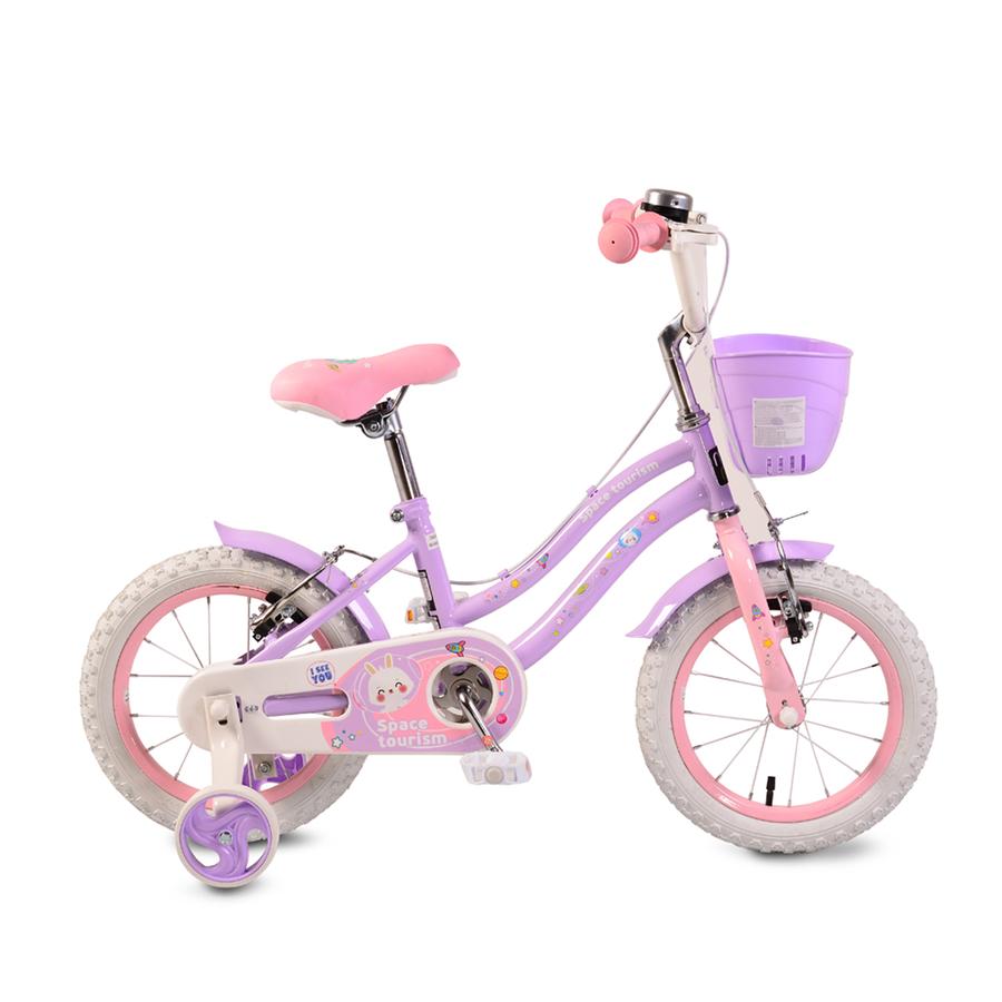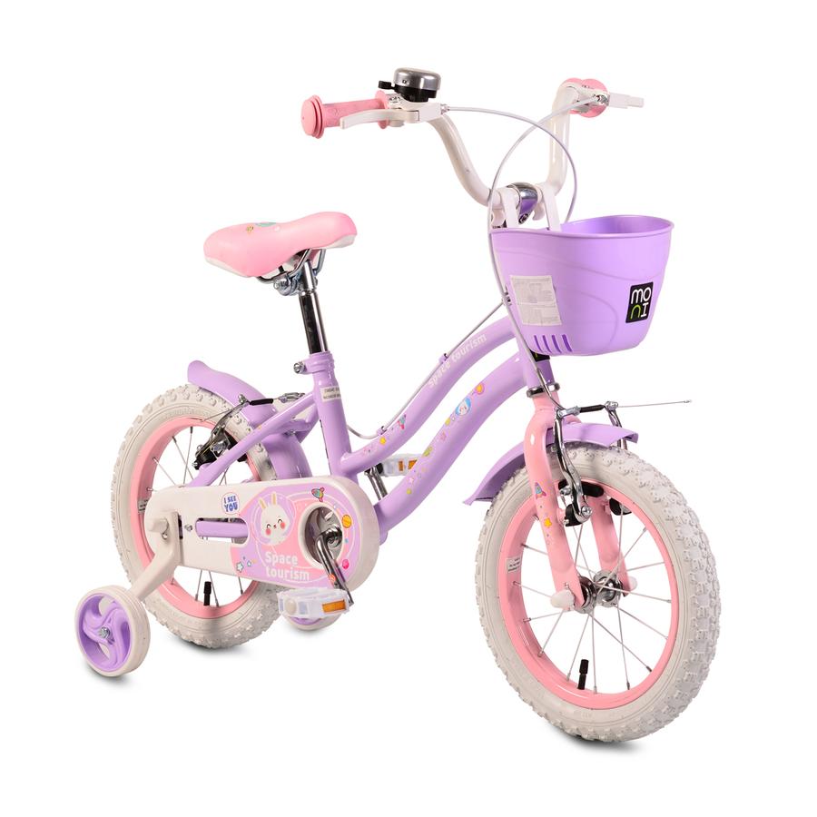 Детски велосипед 14“ с метална рамка. Метални капли. Предна и задна V-brake спирачка. Пластмасов кош и звънец. Помощни колела. Метални калници. Подходящо за деца до 4 до 5 годишна възраст , с максимално тегло до 25 kg