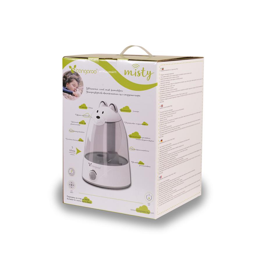 Ултразвуков овлажнител; Разпръсква студена пара; Вместимост на резервоара - 5 Литра; Подходящ за стаи до 25m2. Автоматично изключване, когато водата във резервоара свърши. Регулиране на нивото на парата чрез бутон. Включва четка за почистване. Тих по време на работа, което го прави подходящ за употреба в спалнята на вашето дете. Използва ултразвукова високочестотна технология за създаване на подходящата влажност на детската стая. Преобразувателят е изработен от керамично - титанова сплав, което допринася за по - дълга употреба на продукта. Номинално напрежение: 100 - 240V~; Номинална честота: 50Hz; Мощност: 25W; Максимална скорост на изпарение: 300 ml/h.