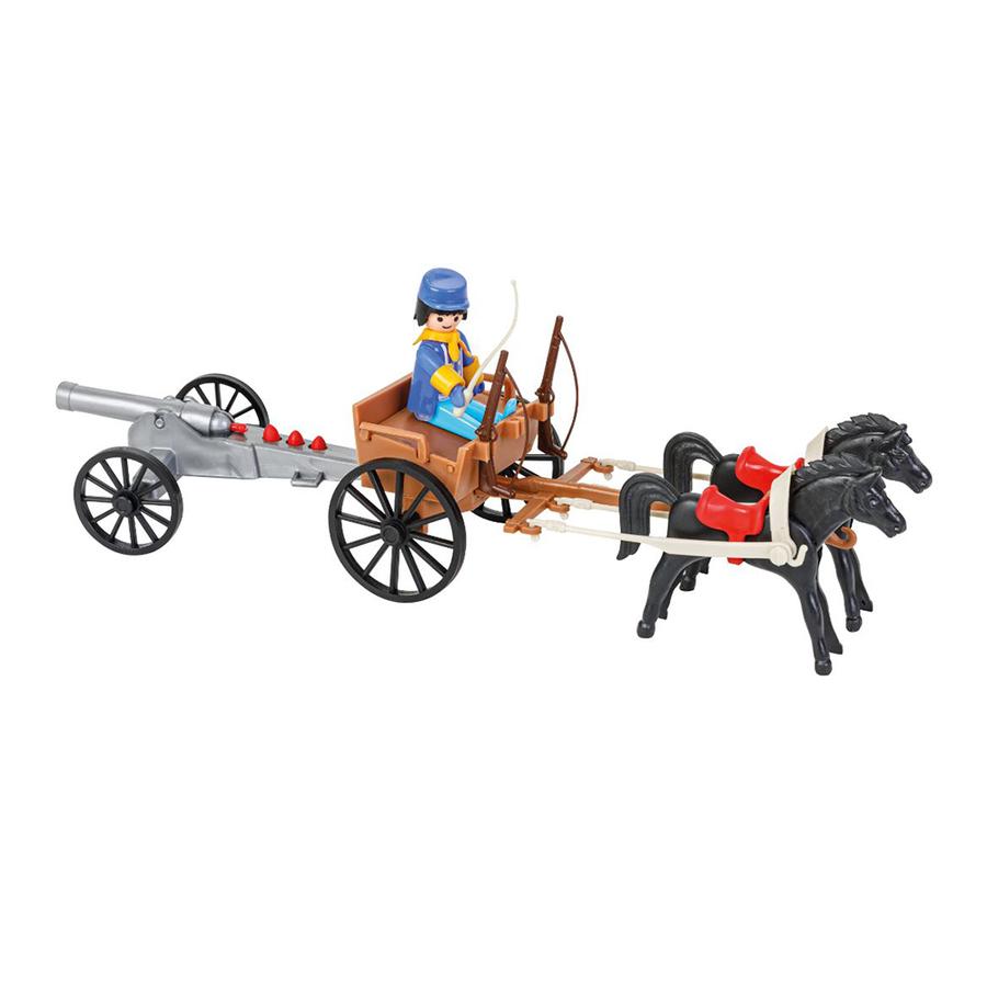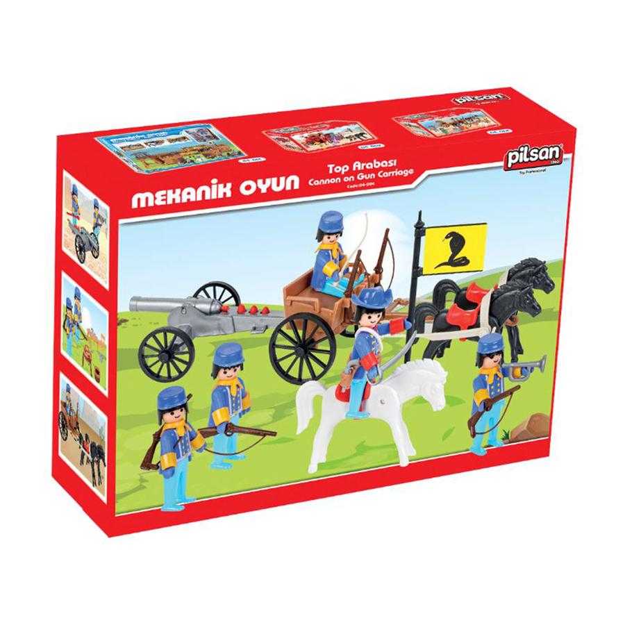 Умален модел на войнишки взвод, грижливо събран в удобна, цветна кутия за съхранение. Смели войници развяват знамена и умело бранят своята територия, препускайки с конете си. Основоното им оръжие - артилерийско оръдие, бива теглено от впряг с коне, управлявани от друг войник. Пукотен екот от пушки се носи из въздуха, а остри саби режат пространството на две. Изработен от бои и материали безопасни за здравето на Вашето дете. Подходящ за деца над три годишна възраст.