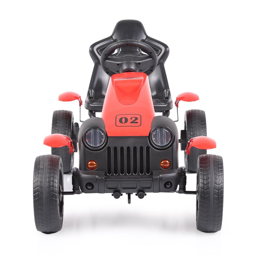 За деца на възраст от 37 до 96 месеца с максимално тегло до 30 кг. С меки синтетични EVA гуми. Движи се напред и назад чрез педалите; спиране чрез ръчната спирачка, разположена над дясната задна гума; лост за свободно движение. Размер на продукта: 105 x 64 x 70 cm. Размер на опаковката: 107 x 30.5 x 67 cm.