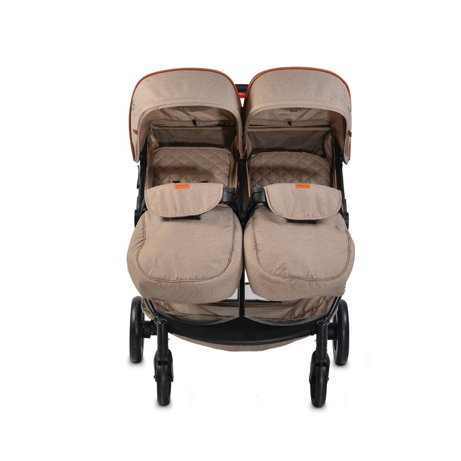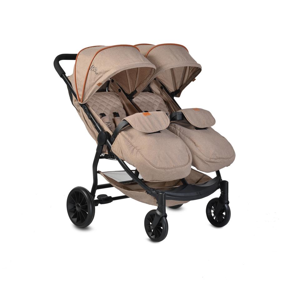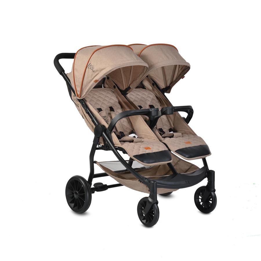 Представяме Ви страхотната бебешка количка Rome, специално проектирана за две деца. Отличава се със своята маневреност, функционалност и лесно управление. Модерната бебешка количка за близнаци Rome е чудесен избор за родителите, които искат да осигурят най-доброто за своите малки съкровища Предните й гуми са въртящи се колела на 360 градуса, които могат да се застопоряват. Моделът е подходящ за две новородени бебенца и деца с тегло до 22 килограма всяко. Удобно разположени в количката, Вашите близнаци ще могат да седнат едно до друго, да общуват и да се забавляват заедно. Те ще бъдат винаги защитени и предпазени, благодарение на 5-точкови колани с меки подплънки. За максимална грижа и комфорт, количката е оборудвана с всичко необходимо: - Сваляем сенник със задно джобче; - Поставка за крачета с 2 позиции на регулиране; - Регулираща се облегалка за гръбчето с няколко позиции на лягане; - Покривало за крачета; - Сваляем преден предпазен борд; - Голям кош за багаж (до 2 кг максимум); - 5 - точков предпазен колан; - Едноточкова задна спирачка.