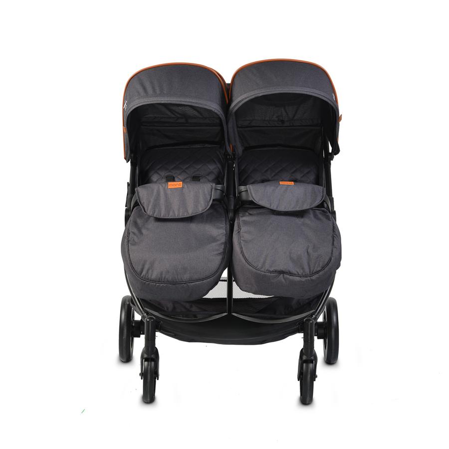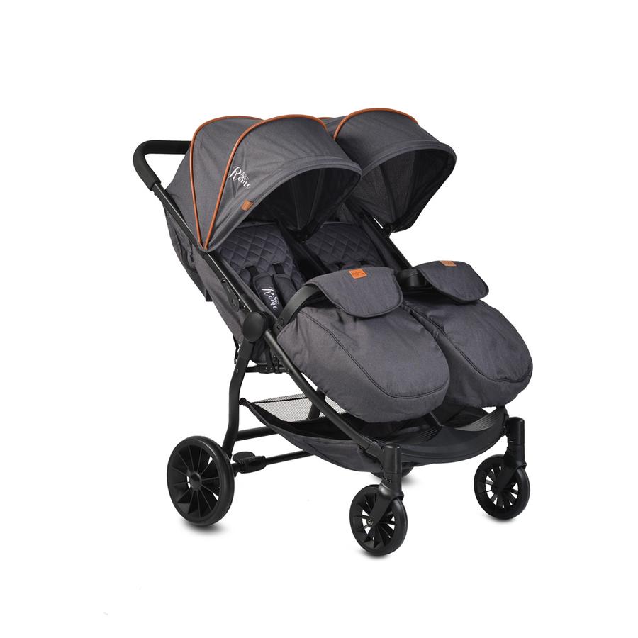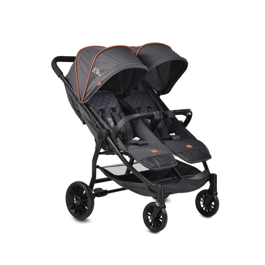 Представяме Ви страхотната бебешка количка Rome, специално проектирана за две деца. Отличава се със своята маневреност, функционалност и лесно управление. Модерната бебешка количка за близнаци Rome е чудесен избор за родителите, които искат да осигурят най-доброто за своите малки съкровища Предните й гуми са въртящи се колела на 360 градуса, които могат да се застопоряват. Моделът е подходящ за две новородени бебенца и деца с тегло до 22 килограма всяко. Удобно разположени в количката, Вашите близнаци ще могат да седнат едно до друго, да общуват и да се забавляват заедно. Те ще бъдат винаги защитени и предпазени, благодарение на 5-точкови колани с меки подплънки. За максимална грижа и комфорт, количката е оборудвана с всичко необходимо: - Сваляем сенник със задно джобче; - Поставка за крачета с 2 позиции на регулиране; - Регулираща се облегалка за гръбчето с няколко позиции на лягане; - Покривало за крачета; - Сваляем преден предпазен борд; - Голям кош за багаж (до 2 кг максимум); - 5 - точков предпазен колан; - Едноточкова задна спирачка.
