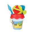 Плажна детска кофичка с аксесоари. Подходяща за деца над 18 месечна възраст. Комплектът включва плажна кофичка със сито, лопатка, гребло, лейка и формичка за пясък. Изработена от бои и материали безопасни за здравето на Вашето дете.