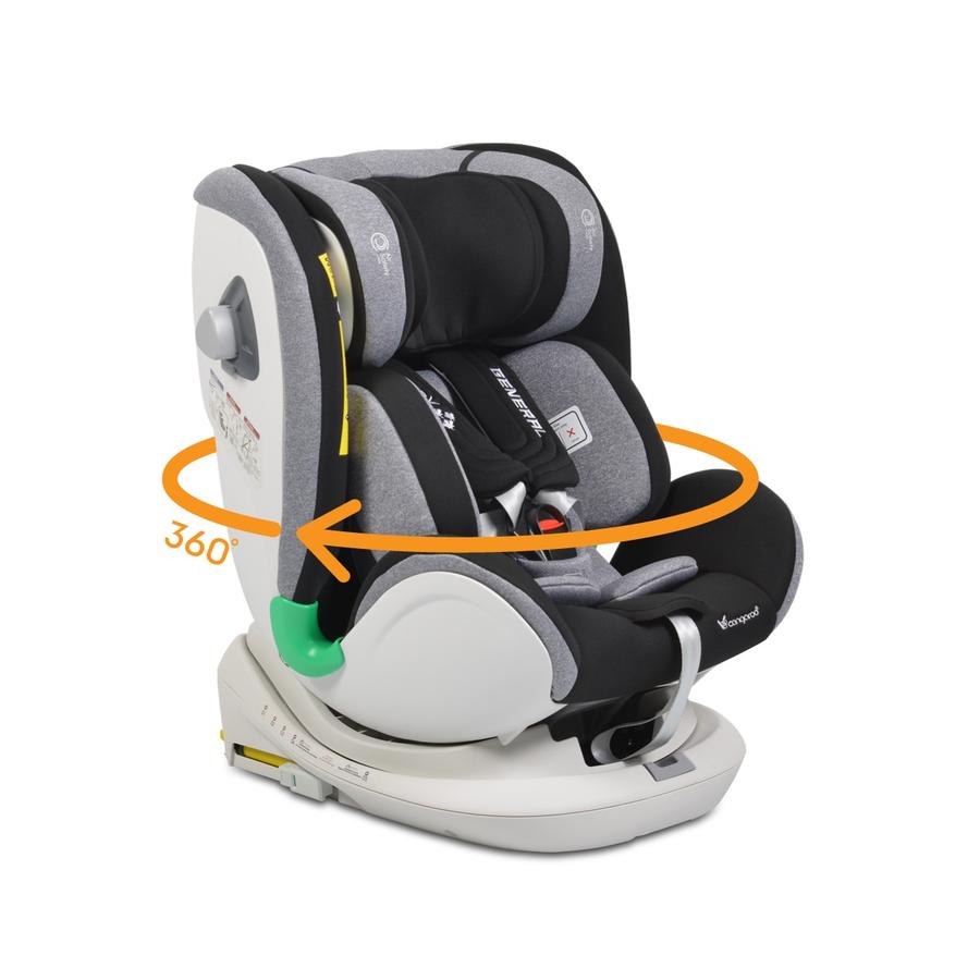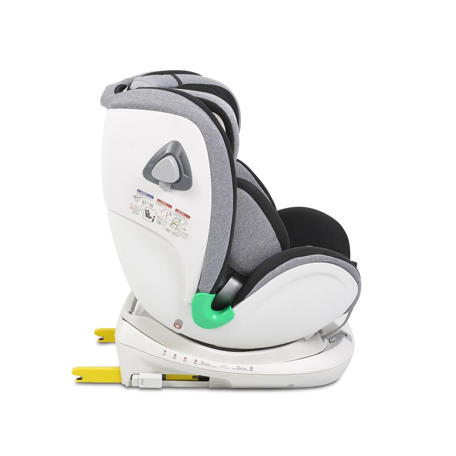 I-SIZE 40-135 см (до 12 години) Столчето се използва обратно на посоката на движение когато детето е от 40 - 105 см. Столчето се използва в посока на движение на автомобила , когато детето е от 76 - 135 см. Снабден с допълнителна система за странична сигурност - Side Protection System. Има 360 градуса на завъртане на основата. ISOFIX система за безопасност, която се изпозлва едновременно по посока на движение и обратно на него.Top teather (колан) и 5-точков предпазен колан - за по- голяма безопасност. Допълнителни две мемори възглавнички за по-голямо удобство. Регулируема облегалка за глава - 9 позиции. 4 позиции на наклон на облегалката за гръб, удобно регулиране с една ръка, с наклон до 165* . Меки и висококачествени платове за допълнителен комфорт.