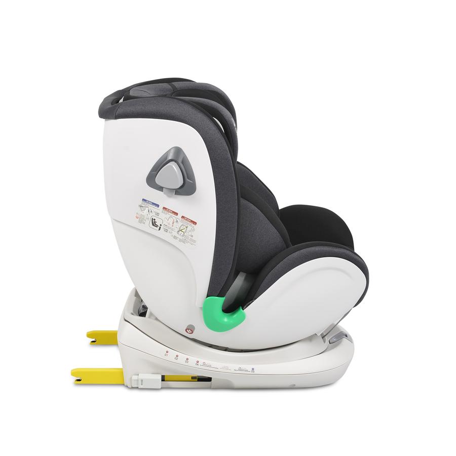 I-SIZE 40-135 см (до 12 години) Столчето се използва обратно на посоката на движение когато детето е от 40 - 105 см. Столчето се използва в посока на движение на автомобила , когато детето е от 76 - 135 см. Снабден с допълнителна система за странична сигурност - Side Protection System. Има 360 градуса на завъртане на основата. ISOFIX система за безопасност, която се изпозлва едновременно по посока на движение и обратно на него.Top teather (колан) и 5-точков предпазен колан - за по- голяма безопасност. Допълнителни две мемори възглавнички за по-голямо удобство. Регулируема облегалка за глава - 9 позиции. 4 позиции на наклон на облегалката за гръб, удобно регулиране с една ръка, с наклон до 165* . Меки и висококачествени платове за допълнителен комфорт.