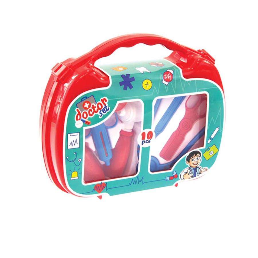Занимателен докторски комплект в куфар. Децата обичат ролевите игри! Комплектът се състои от 10 части. Подходящ за деца над 3 годишна възраст. Изработен от бои и материали безопасни за здравето на Вашето дете.