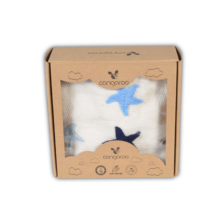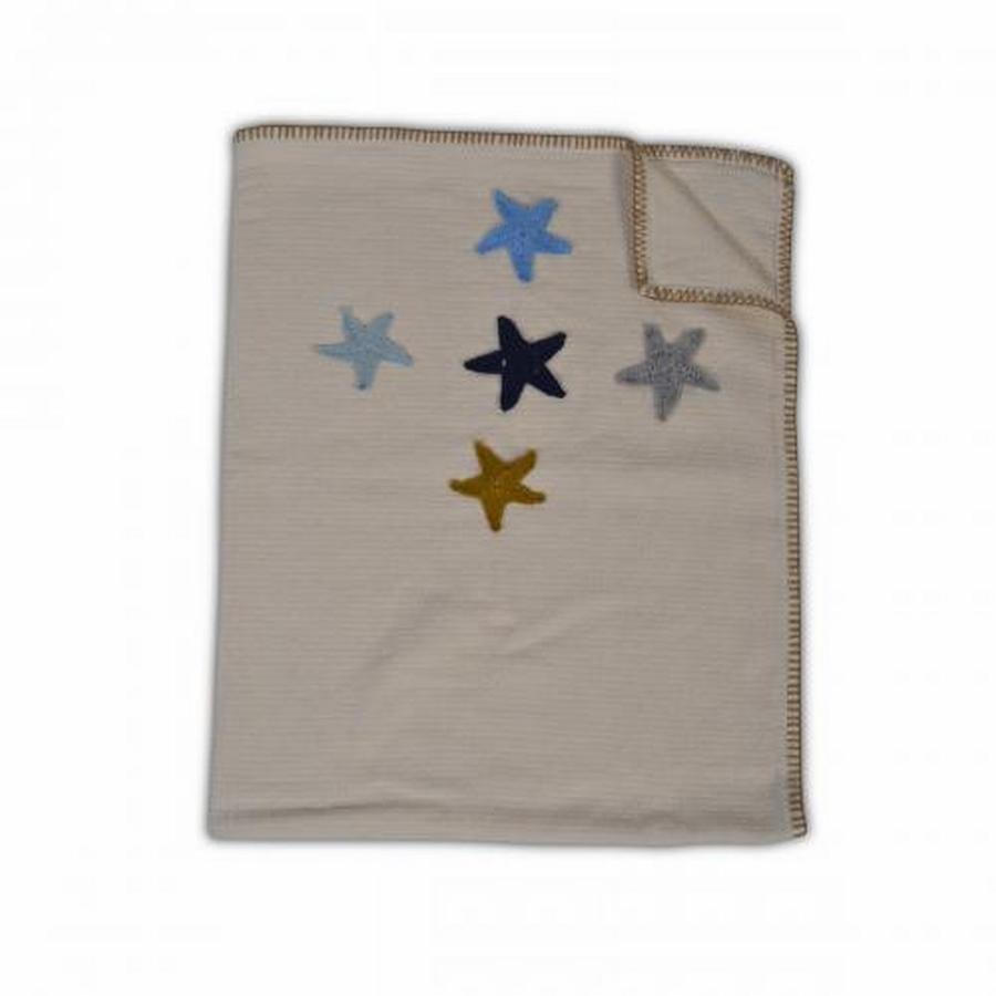 Бебешкото одеялце 5-Star е универсално и може да се използва както за детски кошарки, столчета, така и в бебешката количка. То ще топли Вашето мъниче през всички сезони и ще го предпазва от вятър и студ. Благодарение на 100% фини, органични памучни нишки, от които е изработено одеялцето, то е много мекичко и приятно на допир до нежната бебешка кожа. Сгушено в това симпатично, топло одеяло, детето Ви ще спи сладко и спокойно. Може да го използвате за повиване на новородено или за мека подложка, когато мъничето се опитва да пълзи или си играе весело на земята. Одеялцето е компактно и може да го носите навсякъде със себе си, за да сте сигурни, че Вашето съкровище се е защитено, където и да е. Моделчето се отличава със своя интересен дизайн и декорация на звездички, и е перфектен подарък за новородено. Размерите на бебешкото одеялце са: 100/90 см.