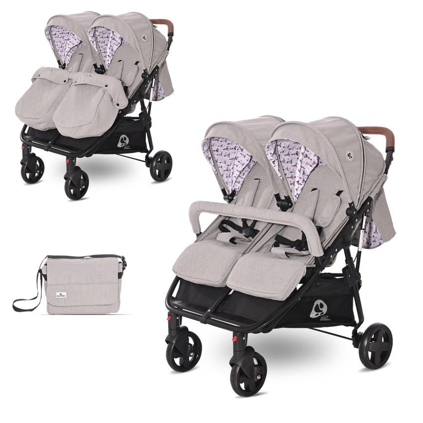 сгъваем сенник с допълнителна секция и козирка,5 точкови предпазни колани,чанта за аксесоари,алуминиева конструкция,индивидуално регулируеми облегалки и подложки за крачета до легнало положение,грифове,прозорчета на сенника,големи кошове за пазаруване,индивидуални покривала за крачета
