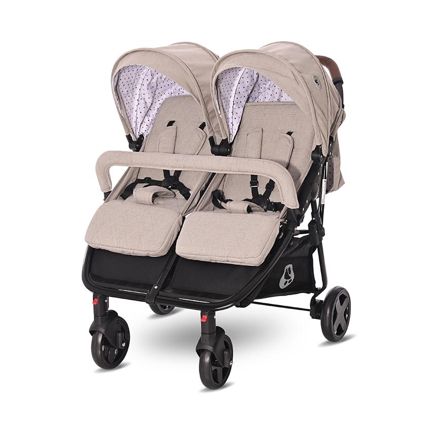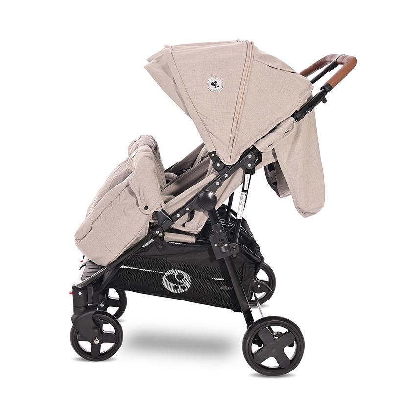 сгъваем сенник с допълнителна секция и козирка,5 точкови предпазни колани,чанта за аксесоари,алуминиева конструкция,индивидуално регулируеми облегалки и подложки за крачета до легнало положение,грифове,прозорчета на сенника,големи кошове за пазаруване,индивидуални покривала за крачета