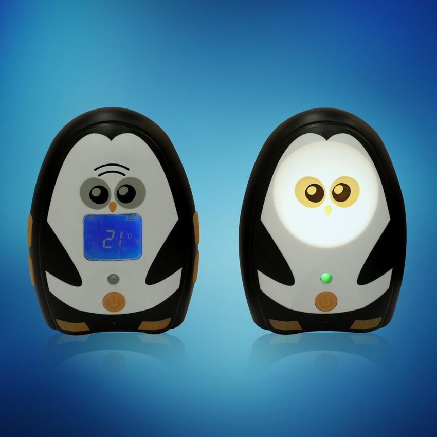 lcd диспей,нощна лампа при устройството за бебето/приемника,възможност за включване и изключване на нощната лампа и от двете устройства,бутон за предаване на говор от родителското устройство към устройството при бебето (двустранна комуникация),аларма при температура в стаята на бебето под 16 градуаса и над 30 градуса,аларма за изтощтена батерия,батерии включени в комплекта: 3бр. ААА Ni-MH