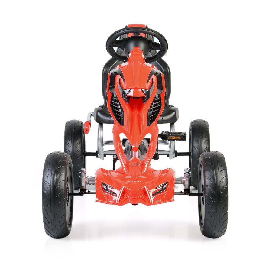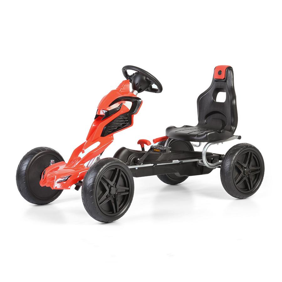 Картингът е с големи PVC гуми за по - меко возене, лост за свободно движение, масивна рамка и удобна ергономична седалка.
