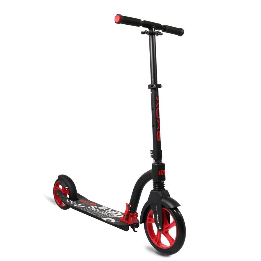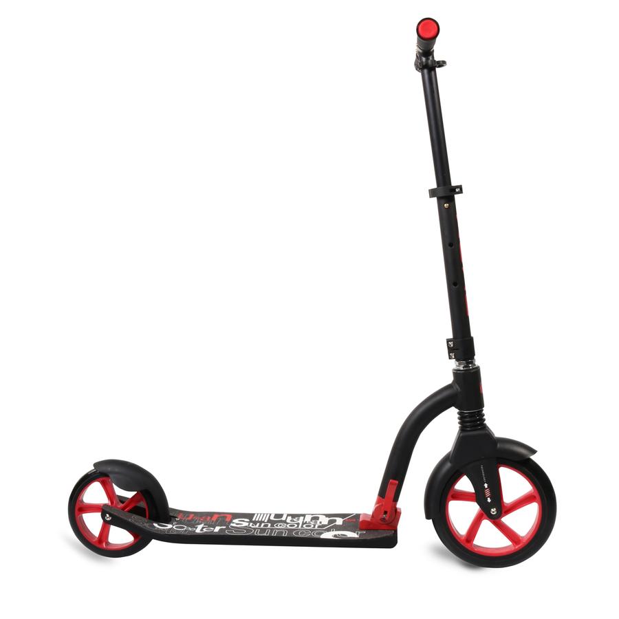 Луксозна сгъваема алуминиева тротинетка Предно колело: 230мм PU 88А гуми с лагери ABEC-7 Задно колело: 180мм PU 88А гуми с лагери ABEC-7 Височината на кормилото може да се регулира от 75 - 90 см Ширина на кормилото:370мм Супер функционална задна спирачка и странична стойка Максимална товароносимост : 100 кг размер на борда за стъпване: 560*150 см