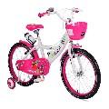Детски велосипед 20“ с метална рамка. Метални капли. Предна и задна V-brake спирачки. Метални калници. Пластмасов преден кош, шише за вода със стойка и звънец. Помощни колела. Подходящо за деца от 6 до 9 годишна възраст,с максимално тегло до 40 kg.
