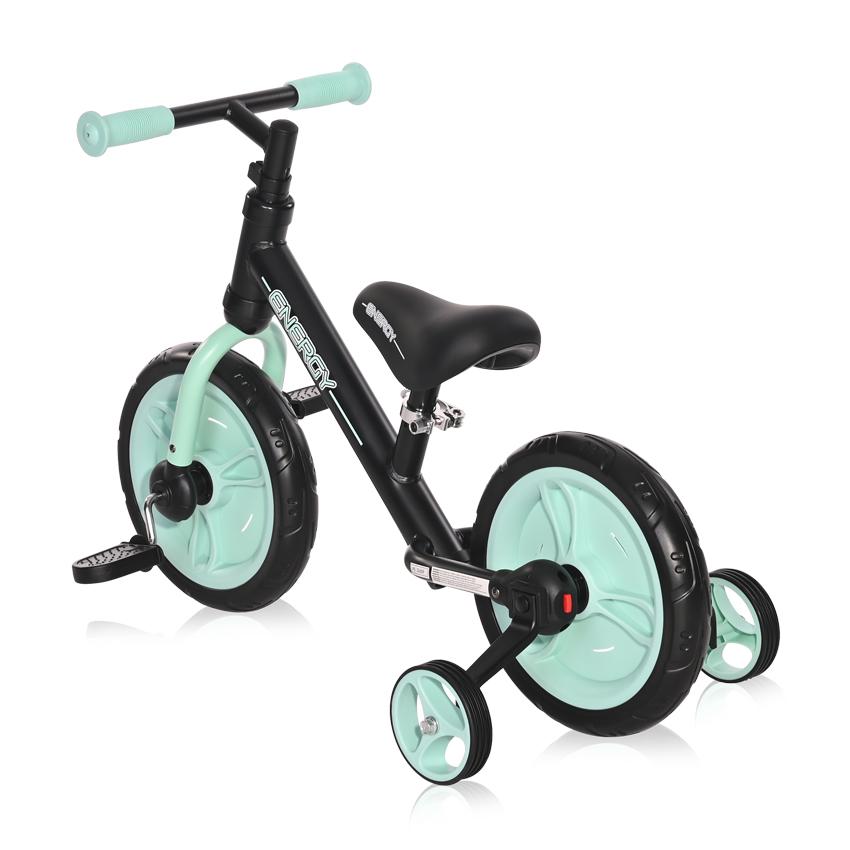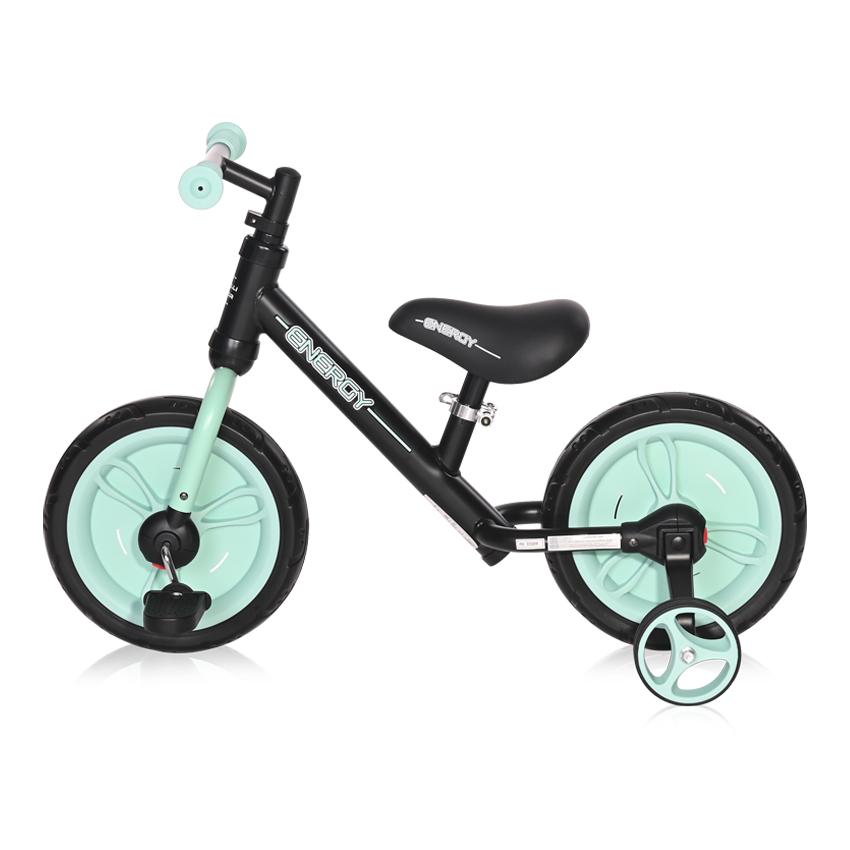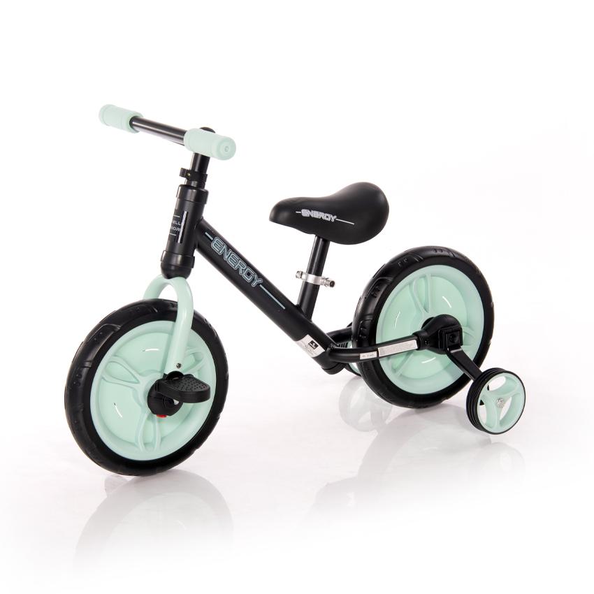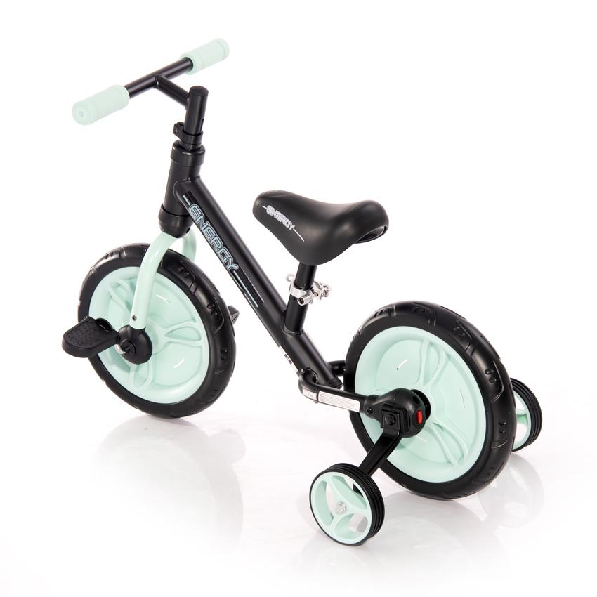 2в1: баланс колело; колело с педали и помощни колела,за упражняване на баланса и за по-лесно преминаване към колело без помощни гуми,EVA колела 11 инча /диаметър: 280мм/,комфортна и мека седалка /Еко кожа/,седалката е регулируема във височина,бутони за бързо освобождаване на педалите и помощните колела,размер на продукта: Д:80,8 см * Ш:39 см * В:53 см