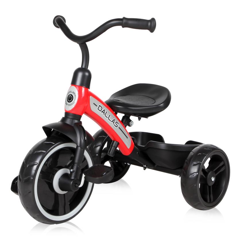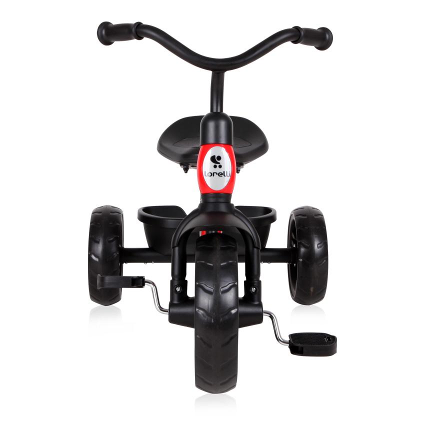 модерен дизайн,ергономична седалка,меки гумени ръхохватки,педали,пластмасов багажник,10" предна EVA гума,8" задни EVA гуми,регулиране на седалката във височина,цветна кутия