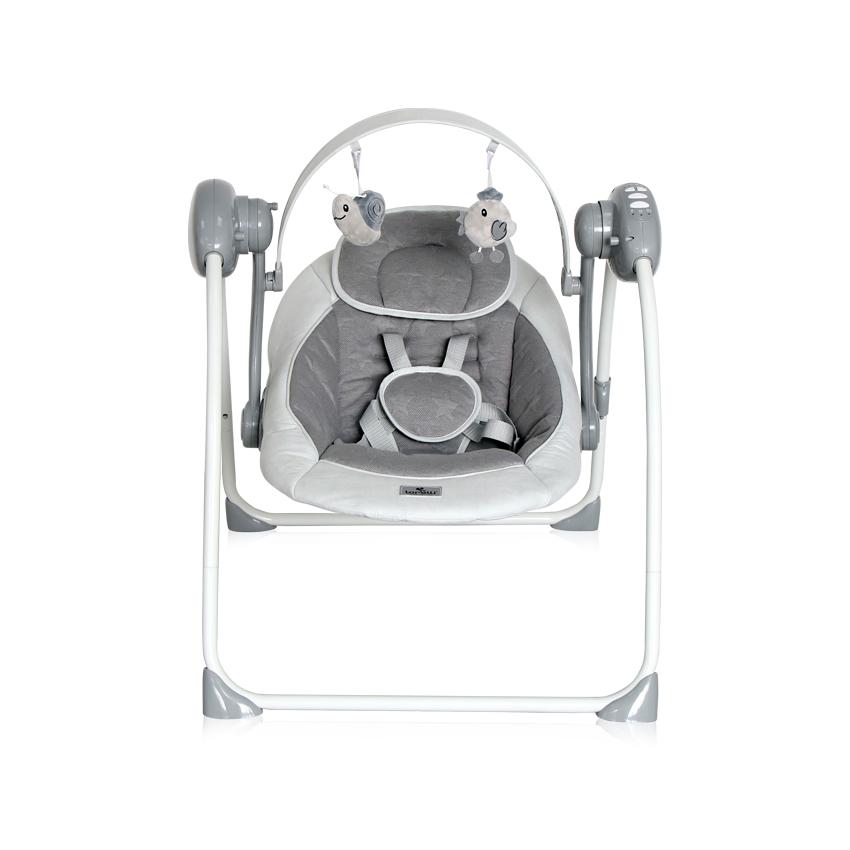 Тих режим на люлеене, позволяващ по-бързото заспиване на детето.,Сгъва се до компактни размери за лесно нонесе и съхранение.,Музикален панел с 12 мелодии и възможност за регулиране силата на звука,Таймер с интервали от 8, 15 и 30 минути,5 скорости на люлеене,Регулируем 5-точков колан,Гриф с 2 плюшени играчки,Захранва се с 4 броя батерии /не са включени в комплекта/,Адаптер, включен в комплекта,Отстраняема подложка за глава, осигуряваща oпора и максимален комфорт за Вашето дете.