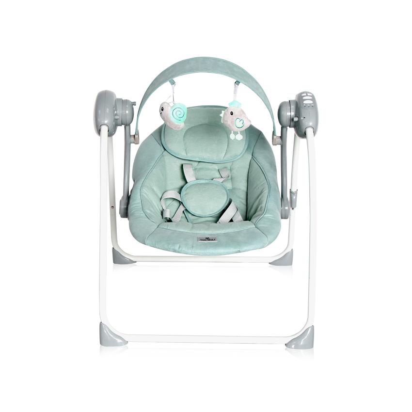 Тих режим на люлеене, позволяващ по-бързото заспиване на детето.,Сгъва се до компактни размери за лесно нонесе и съхранение.,Музикален панел с 12 мелодии и възможност за регулиране силата на звука,Таймер с интервали от 8, 15 и 30 минути,5 скорости на люлеене,Регулируем 5-точков колан,Гриф с 2 плюшени играчки,Захранва се с 4 броя батерии /не са включени в комплекта/,Адаптер, включен в комплекта,Отстраняема подложка за глава, осигуряваща oпора и максимален комфорт за Вашето дете.