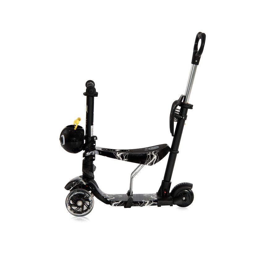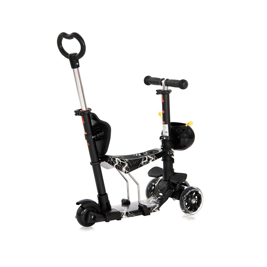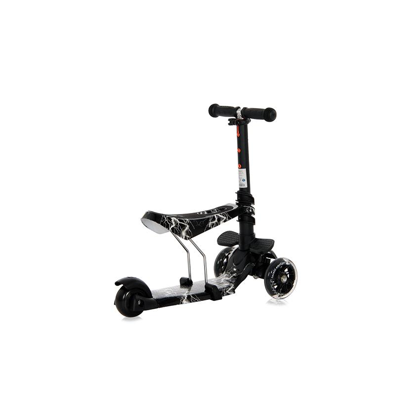 крачна спирачка,висококачествени лагери ABEC-7,TPR ръкохватки,предни полиуретанови гуми със светлина 120/28 mm,максимално тегло - 20 kg,полипропиленова платформа с размер: 350/120 mm,заднa pvc гумa 100/48 мм,сгънато положение,цветна кутия,стъпенка,седалка,регулируема дръжка в 3 позиции,отстраняема облегалка,регулируема родителска дръжка в 3 позиции