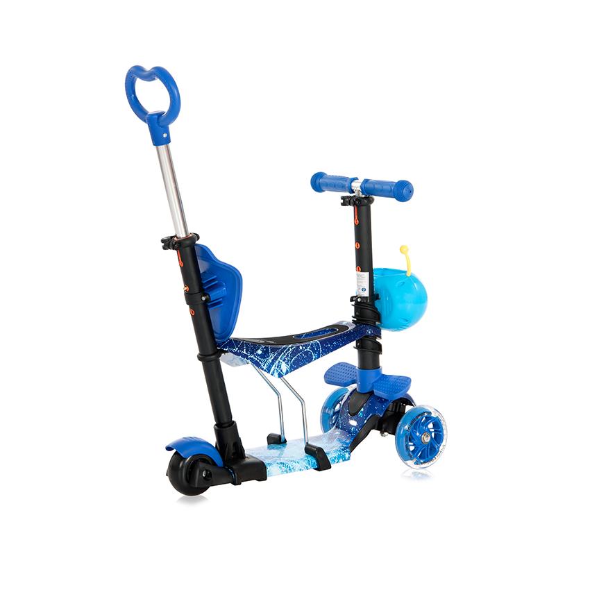 крачна спирачка,висококачествени лагери ABEC-7,TPR ръкохватки,предни полиуретанови гуми със светлина 120/28 mm,максимално тегло - 20 kg,полипропиленова платформа с размер: 350/120 mm,заднa pvc гумa 100/48 мм,сгънато положение,цветна кутия,стъпенка,седалка,регулируема дръжка в 3 позиции,отстраняема облегалка,регулируема родителска дръжка в 3 позиции