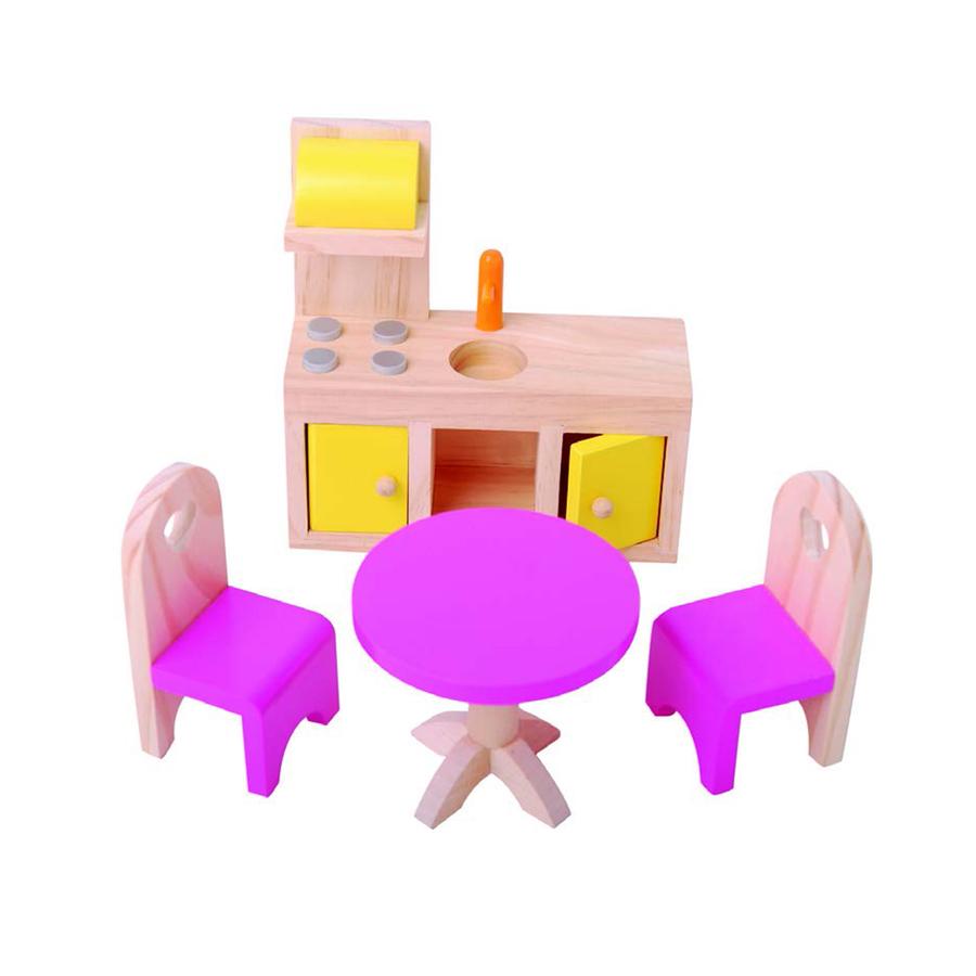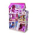 Дървена къща за кукли, която включва 17 аксесоара и мебели за обзавеждане; Къщата е подходяща за кукли с размер до 12см; Размер на сглобената къща е височина 90,00см, ширина 59,00см и дълбочина 33см; За деца над 3 годишна възраст