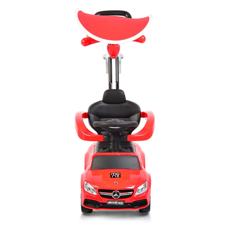 За деца на възраст от 12 до 36 месеца; Максимално тегло на детето - 25 kg; С дизайн, който допринася за развитието на моториката и баланса на детето; С дръжка за родителя, контролираща предните гуми; сенник; предпазен борд; Върху волана са разположени бутони за различни забавни мелодии. Музикалните функции се активират чрез батерии 2*АА 1.5V батерии (не са включени). С лиценз от Daimler AG.