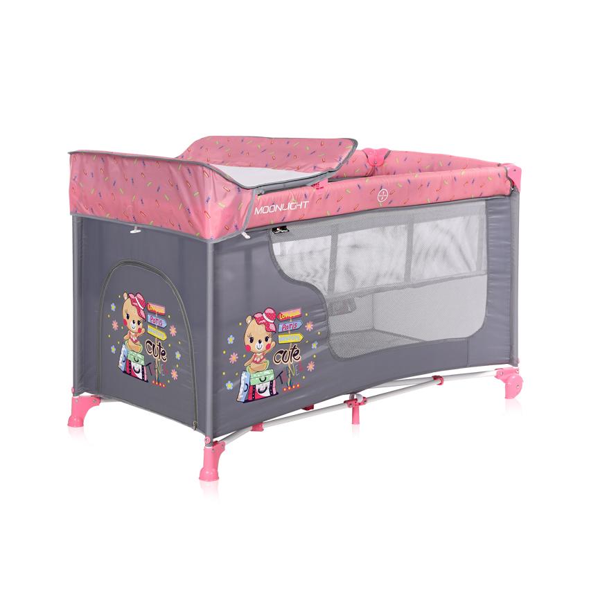 колелца за лесно придвижване,подложка за повиване,матрак,страничен отвор с цип,сгъва се до компактни размери,двойно осигурителна система за сгъване,лесно се транспортира,безопасно и удобно място за игра,чанта за пренасяне,второ ниво с цип