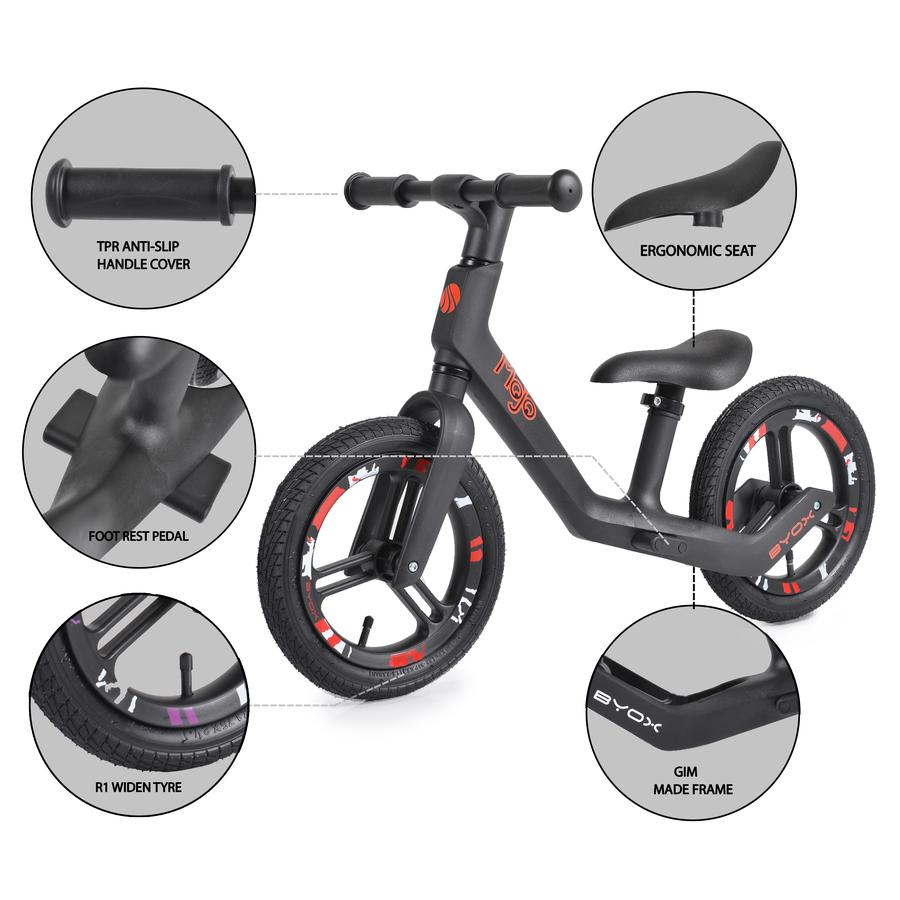 Помпащи 12“ гуми с PP джанти. Кормило регулиращо се на височина от 54,5-57,5 с TPR ръковхватки.