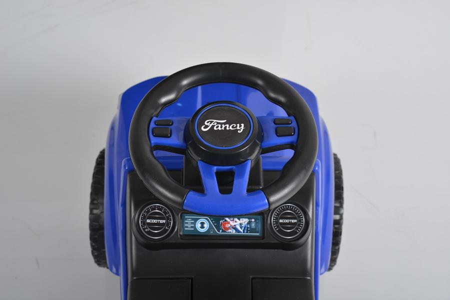 Продуктът е предназначен за деца на възраст от 37 до 72 месеца години, като теглото на детето не трябва да надвишава 23 кг. Детската пластмасова кола за яздене е с дизайн, който допринася за развитието на моториката и баланса на детето. Върху волана са разположени бутони за различни забавни мелодии. Музикалните функции се активират чрез батерии 3 x АА 1.5V батерии (не са включени).