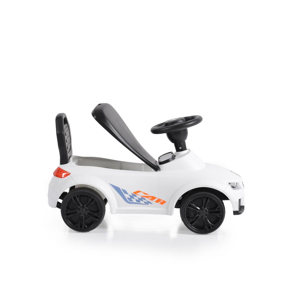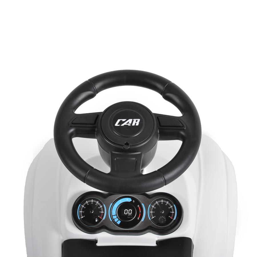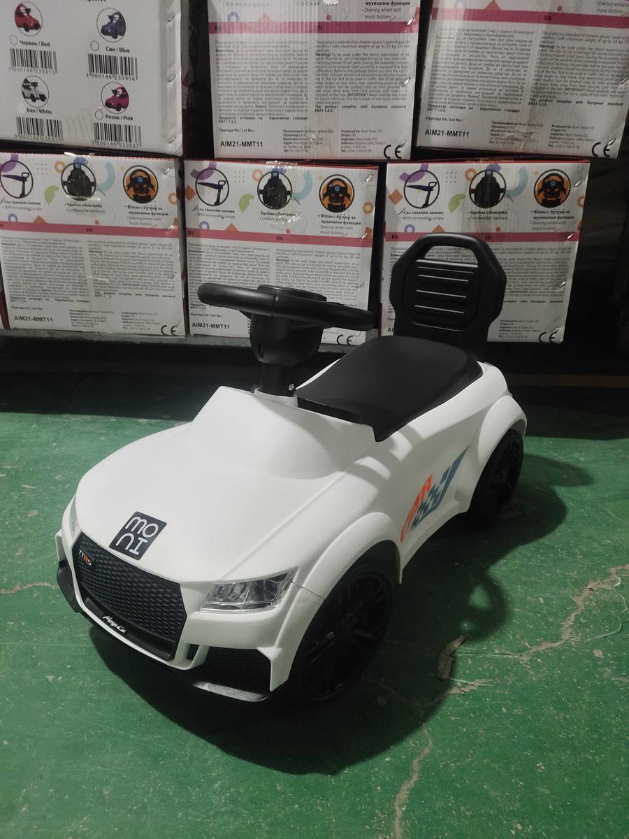 Продуктът е предназначен за деца на възраст над 36 месеца (над 3 години), като теглото на детето не трябва да надвишава 23 кг. Детската пластмасова кола за яздене е с дизайн, който допринася за развитието на моториката и баланса на детето. Върху волана са разположени бутони за различни забавни мелодии. Музикалните функции се активират чрез батерии 3 x АА 1.5V батерии (не са включени).