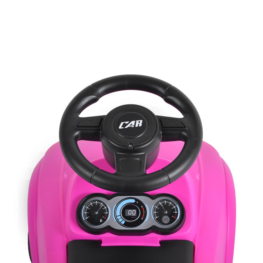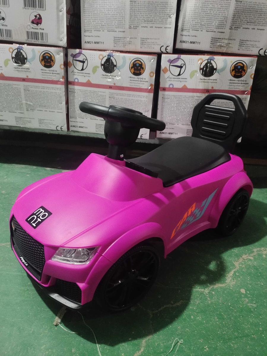 Продуктът е предназначен за деца на възраст над 36 месеца (над 3 години), като теглото на детето не трябва да надвишава 23 кг. Детската пластмасова кола за яздене е с дизайн, който допринася за развитието на моториката и баланса на детето. Върху волана са разположени бутони за различни забавни мелодии. Музикалните функции се активират чрез батерии 3 x АА 1.5V батерии (не са включени).