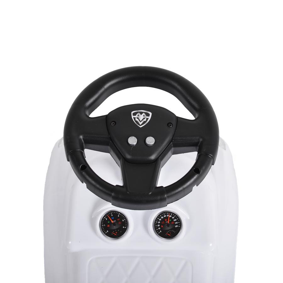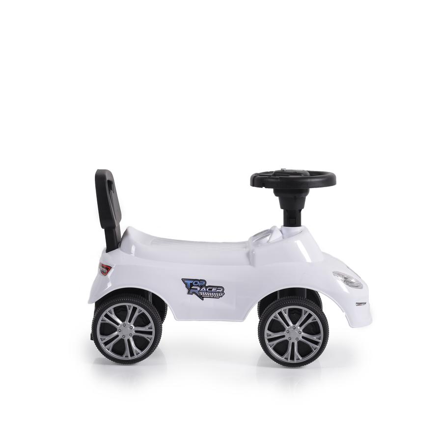 Продуктът е предназначен за деца на възраст над 36 месеца (над 3 години), като теглото на детето не трябва да надвишава 23 кг. Детската пластмасова кола за яздене е с дизайн, който допринася за развитието на моториката и баланса на детето. Върху волана са разположени бутони за различни забавни мелодии. Музикалните функции се активират чрез батерии 3 x АА 1.5V батерии (не са включени).
