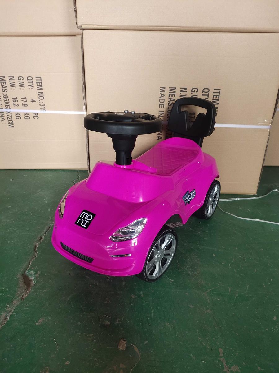 Продуктът е предназначен за деца на възраст над 36 месеца (над 3 години), като теглото на детето не трябва да надвишава 23 кг. Детската пластмасова кола за яздене е с дизайн, който допринася за развитието на моториката и баланса на детето. Върху волана са разположени бутони за различни забавни мелодии. Музикалните функции се активират чрез батерии 3 x АА 1.5V батерии (не са включени).
