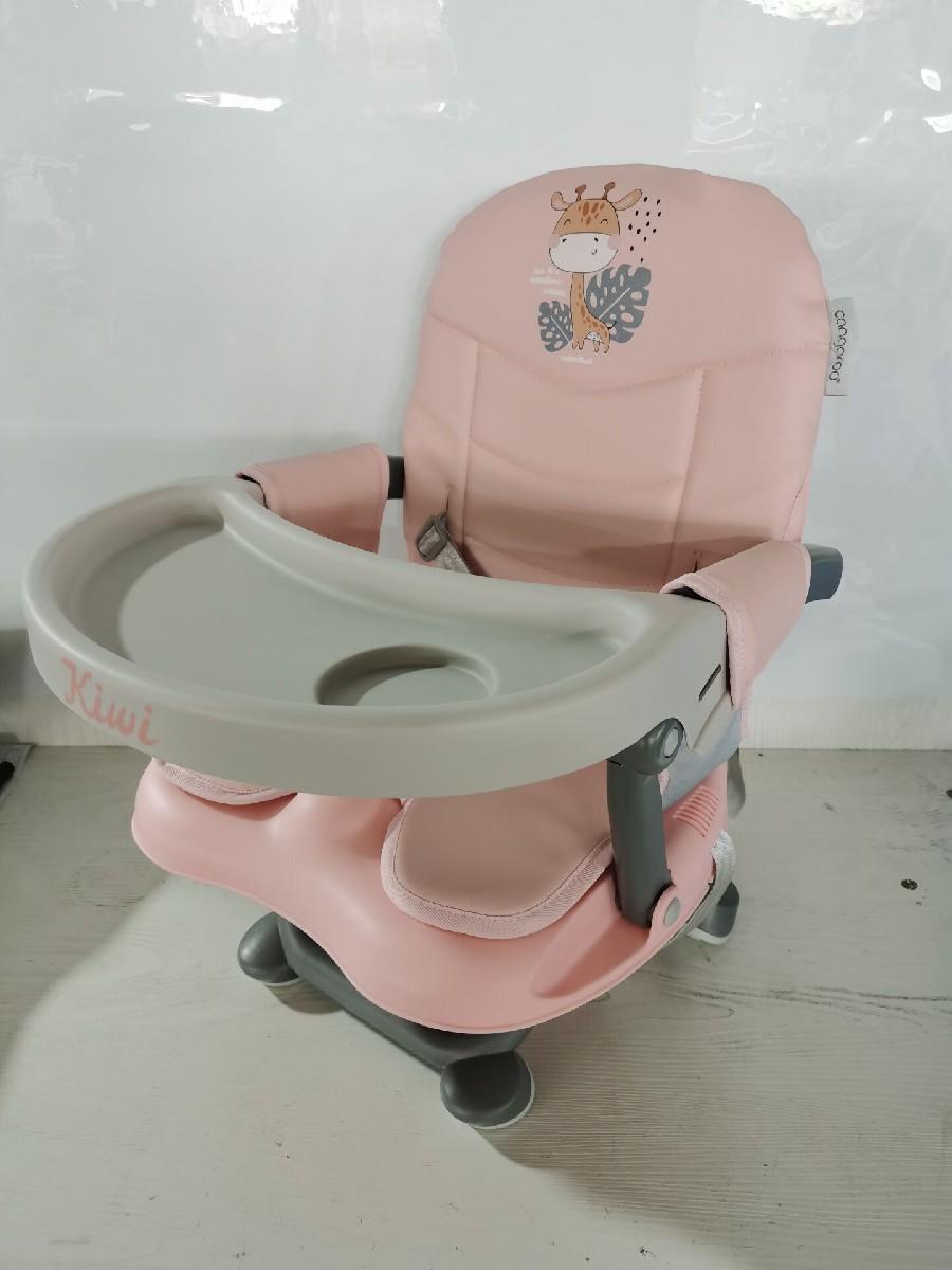 Повдигащият стол за хранене Kiwi е предназначен за деца, които могат самостоятелно да седят приблизително на възраст над 6 месеца и с тегло до 15 кг ( около 3 годишно дете). Столчето има четири позиции на височината, които се определят от възрастта на детето. Също така има триточков колан за обезопасяване. Към стола е включенa и допълнителна подложка, която предлага максимален комфорт на вашето мъниче. Таблата на стола е еднослойна и има специална поставка за чаша. Закрепването на стола е много бързо и лесно. Столът за хранене се прикрепя на две места за обикновен стол - през облегалката и през седалката. Това става с помощта на допълнителни колани. Повдигащият стол за хранене е лесно и компактно преносим.
